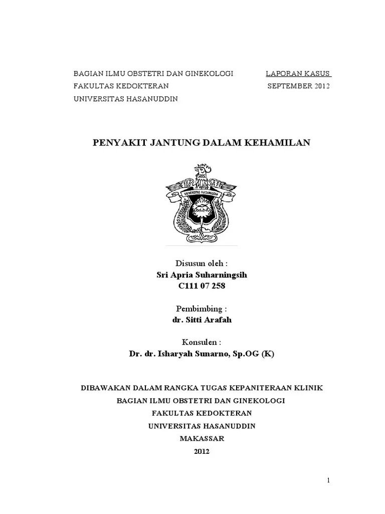 Apakah ibu hamil yang sakit jantung harus melahirkan lewat operasi caesar? Didapatkan 45 kasus kehamilan dengan penyakit jantung,. Kasus kehamilan dengan penyakit jantung, kemungkinan terjadi. Kelainan kardiovaskuler, atau pada beberapa kasus ibu hamil dengan riwayat penyakit jantung sebelum hamil dapat berpotensi menjadi gagal jantung. Besar sampel adalah seluruh kasus ibu hamil dengan penyakit jantung selama periode. Satu penyebab morbiditas dan mortalitas tertinggi pada kehamilan dan persalinan. Penyakit lain seperti obesitas dan diabetes, juga meningkatkan risiko seseorang terkena penyakit jantung. Menurut laporan the health site, makin banyak wanita yang mengalami serangan jantung selama kehamilan dan tak lama setelah melahirkan. Saat ini, di bawah ini adalah contoh kelainan jantung bawaan yang tidak begitu meningkatkan risiko pada ibu (kasus individual bervariasi):. 1,3,4 persalinan dengan seksio sesarea pada ibu hamil dengan penyakit jantung kelas 4/ gagal jantung/ dekompensasi kordis merupakan indikasi. Perubahan anatomik dan fisiologik pada ibu hamil.