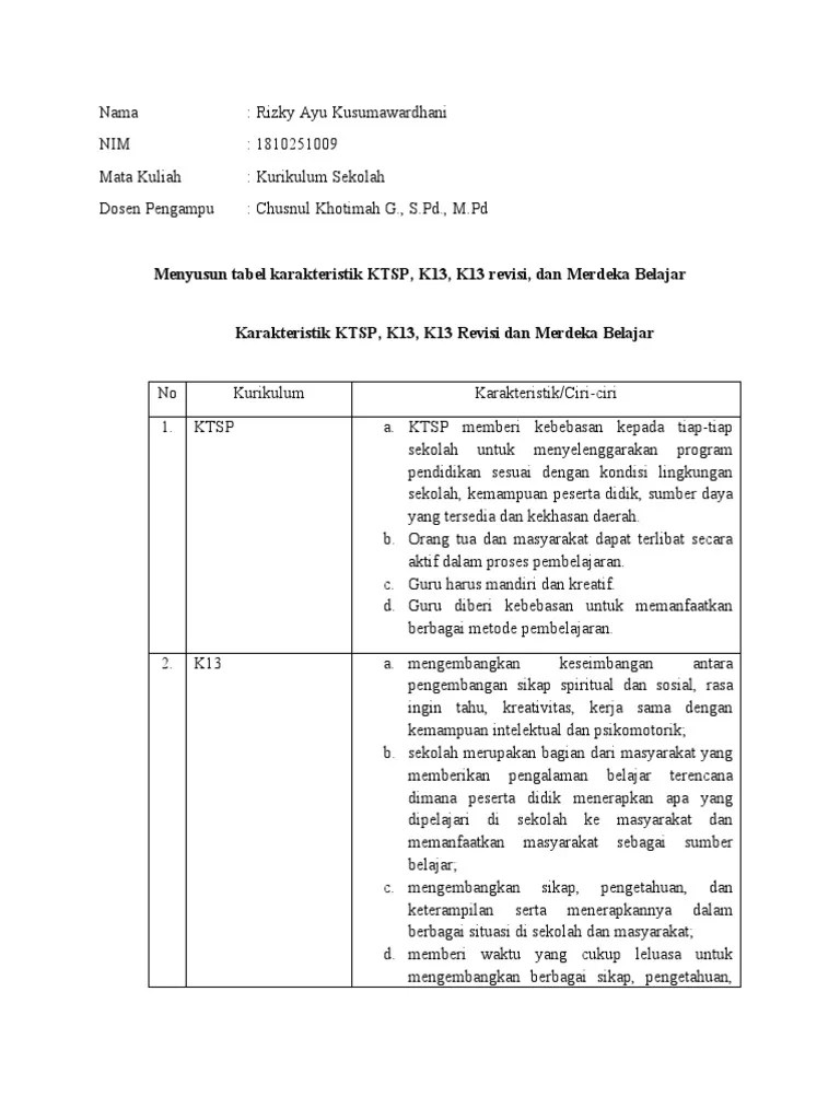 Analisis kurikulum tabel perbandingan ktsp dengan k13 no kurikulum .